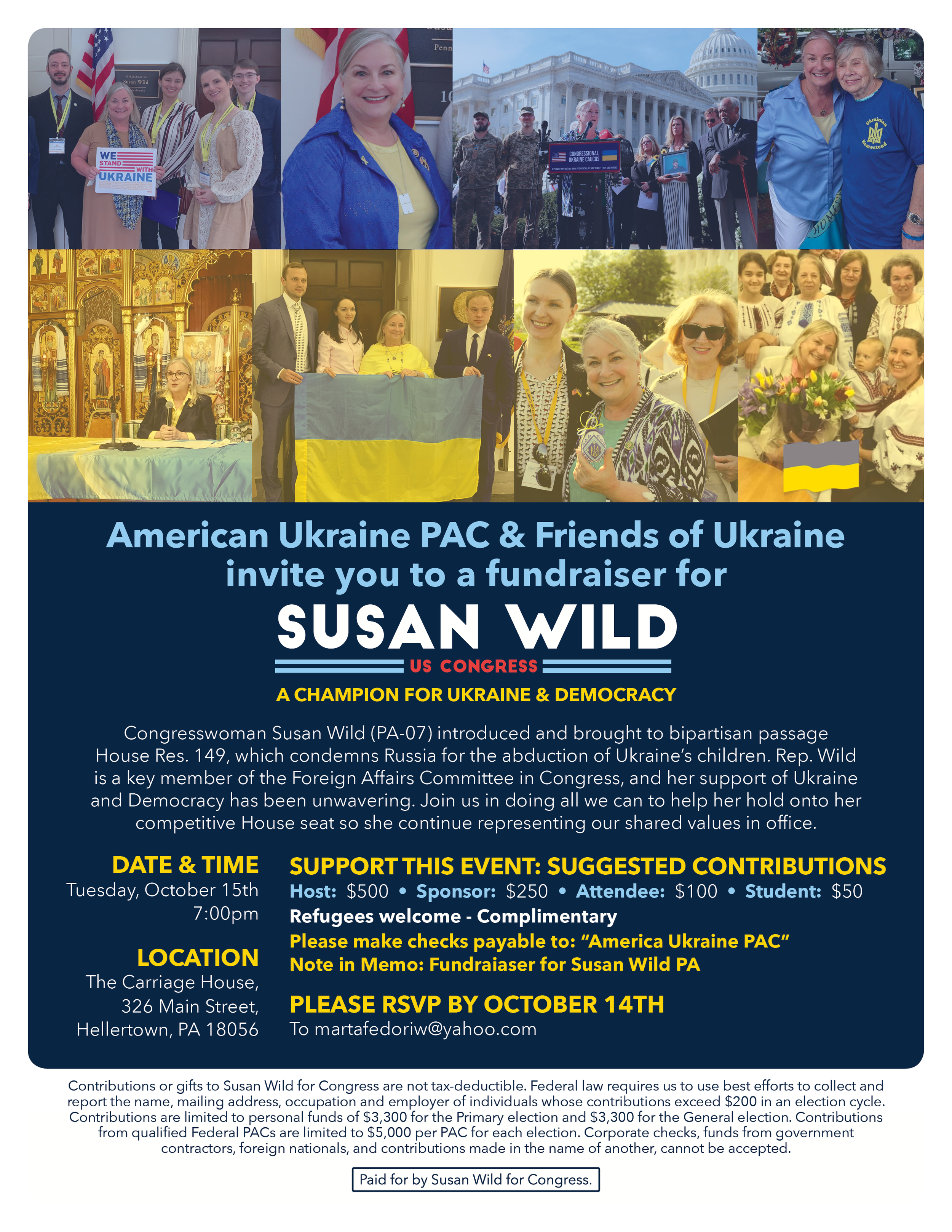 Please consider supporting Rep Wild to ensure a Ukraine Champion returns to Congress: https://candidates.amukrpac.org/page/Wild