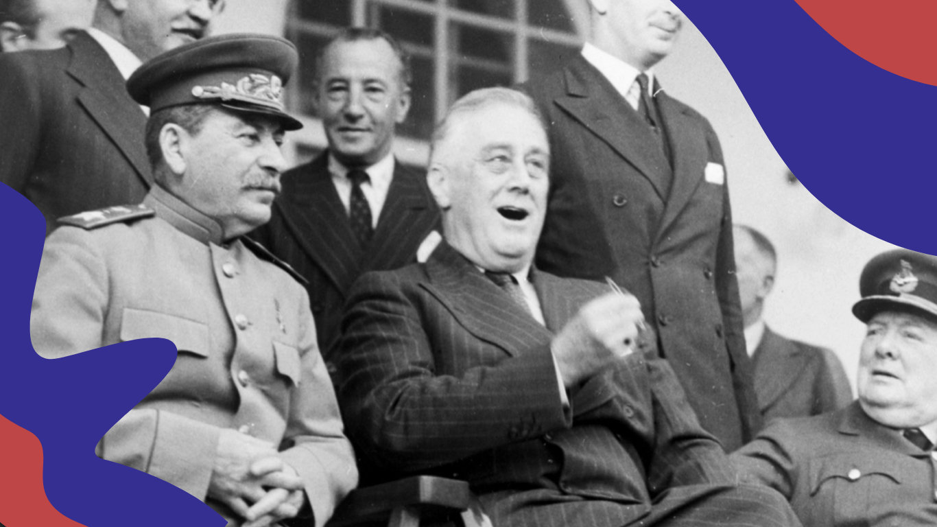 📷 Joseph Stalin, Franklin D. Roosevelt, and Winston Churchill — Tehran Conference, Nov. 28, 1943. US Signal Corps, via Library of Congress / Wikimedia Commons
